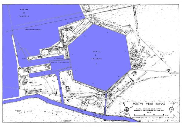 L'imperatore Traiano fece costruire da Apollodoro di Damasco un nuovo porto, il Porto di Traiano, più funzionale e più arretrato rispetto a quello di Claudio. I lavori durarono dal 100 al 112, con la creazione di un bacino di forma esagonale con lati di 358 m e profondo 5 m, con una superficie di 32 ettari e 2000 metri di banchina. Fu costruito un ulteriore canale, ed il collegamento ad Ostia fu assicurato da una strada a due corsie